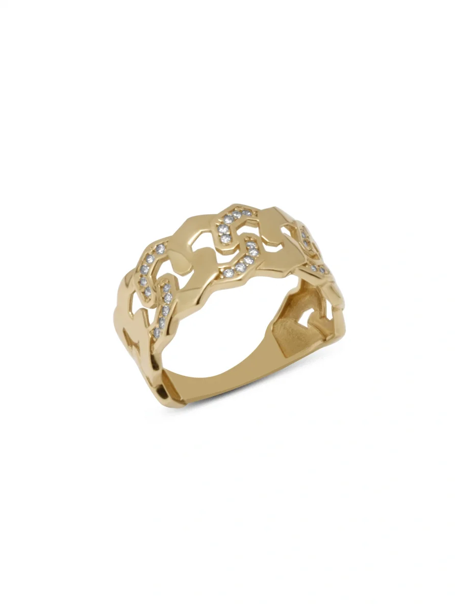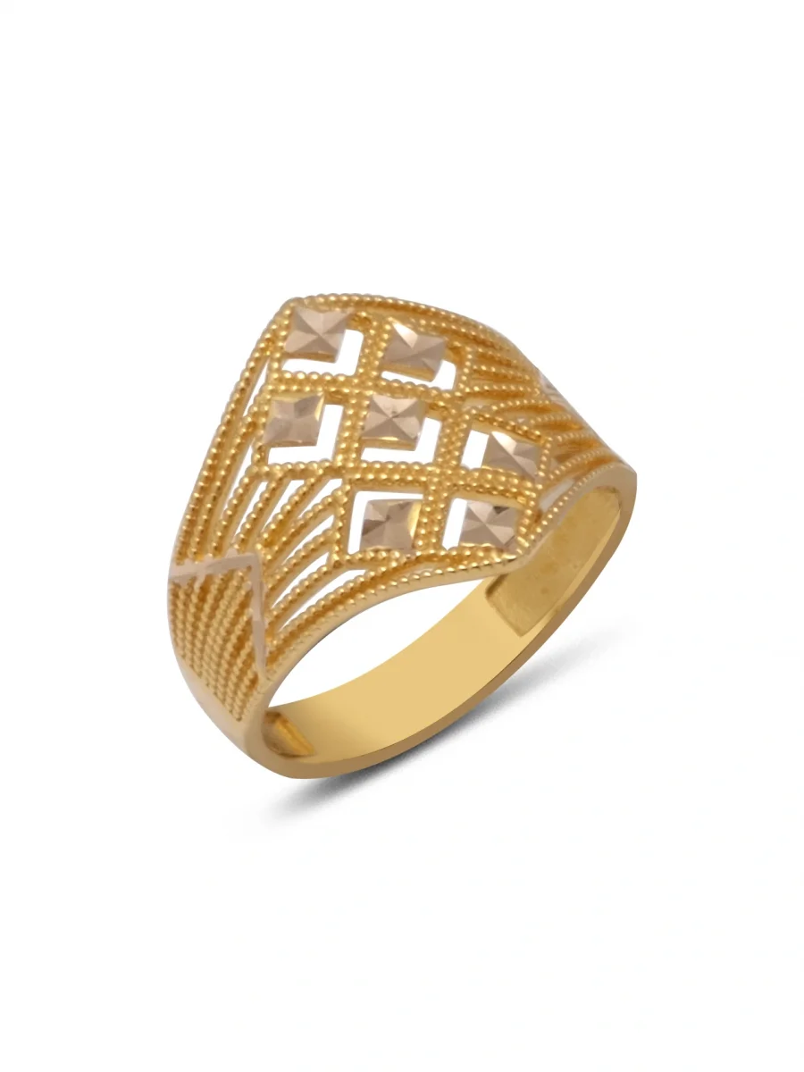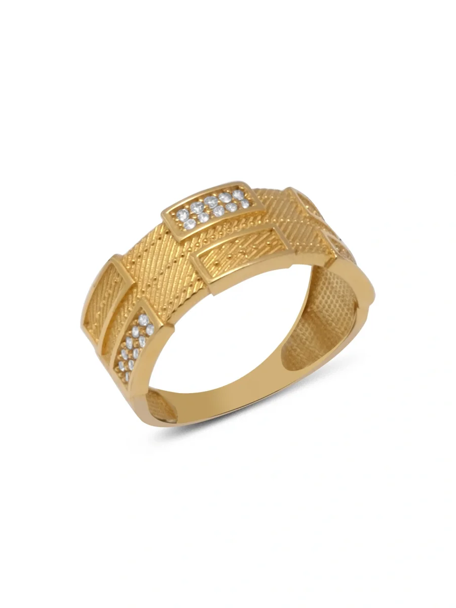 Taşlı Izgara Altın Yüzük