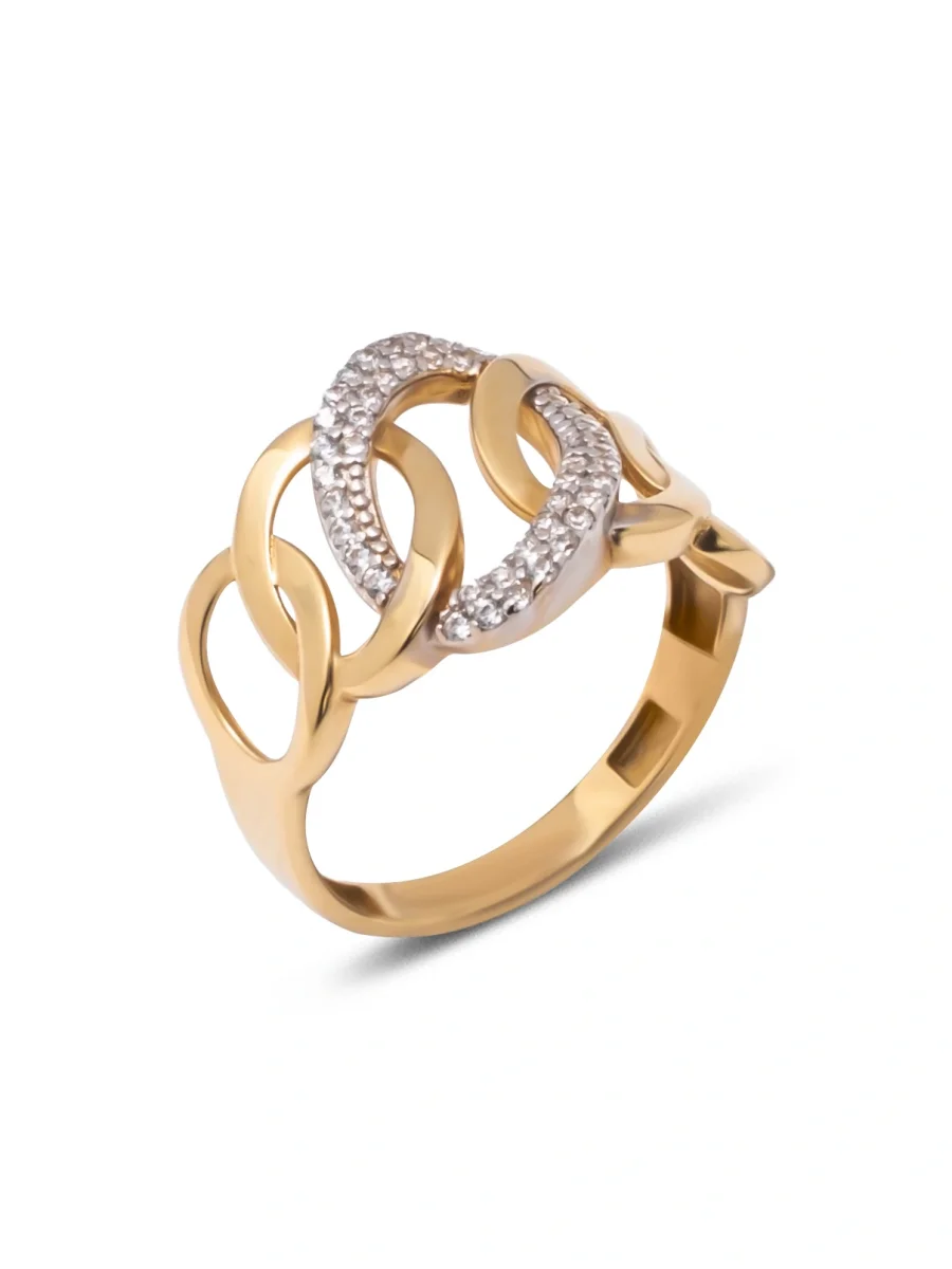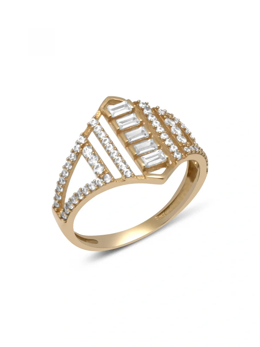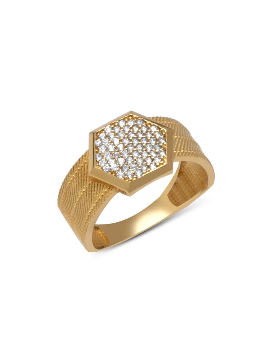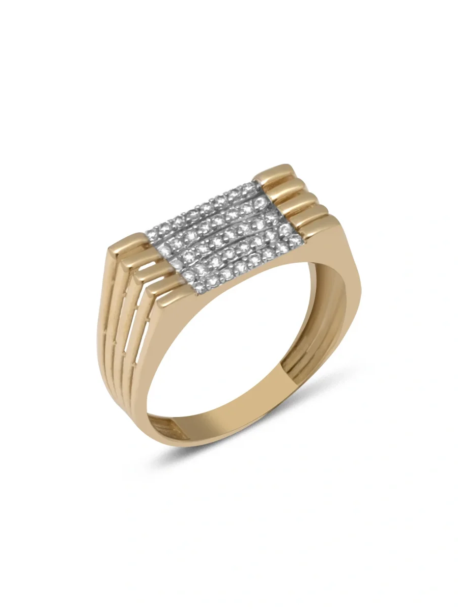 Taşlı Izgara Altın Yüzük