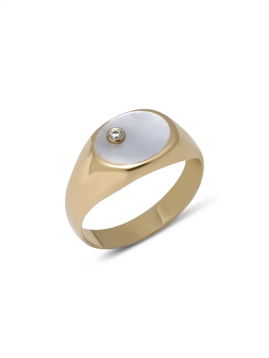Sedefli Tektaş Altın Yüzük
