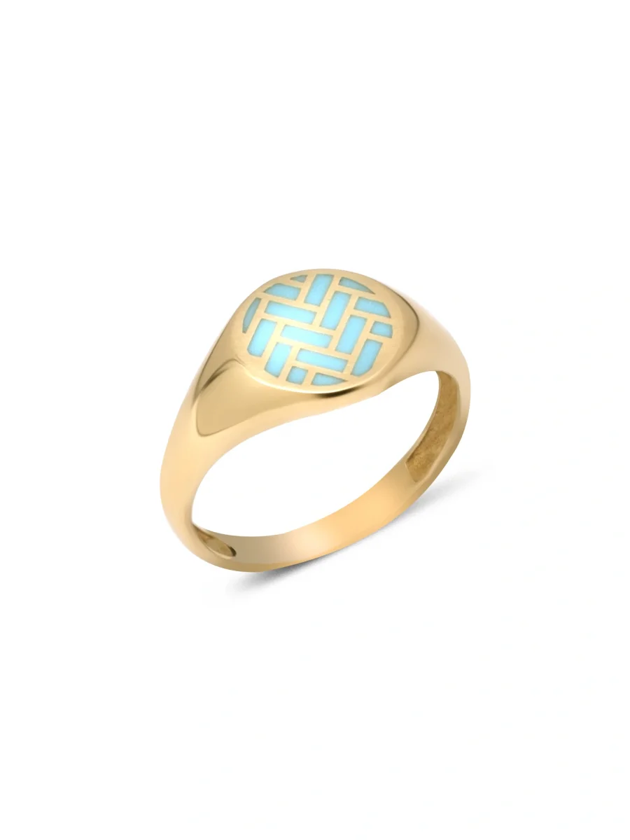 Gül Desen Firuze Altın Yüzük