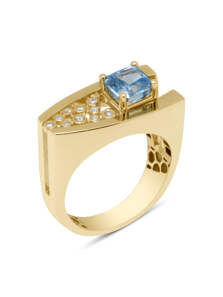 Mavi Taşlı Özel Altın Yüzük